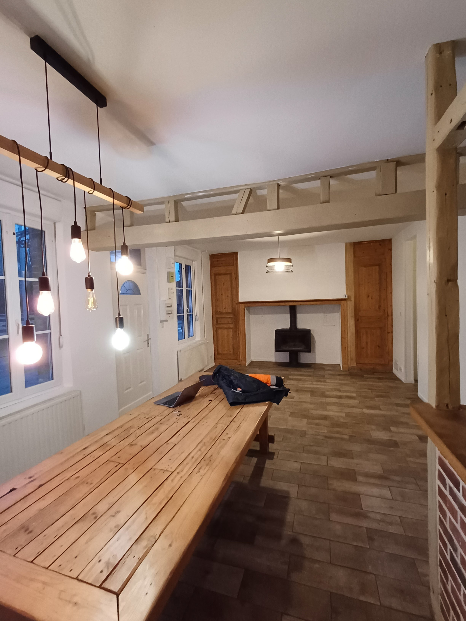 Au rez-de-chaussée : un séjour, une cuisine, une salle d’eau et des WC.