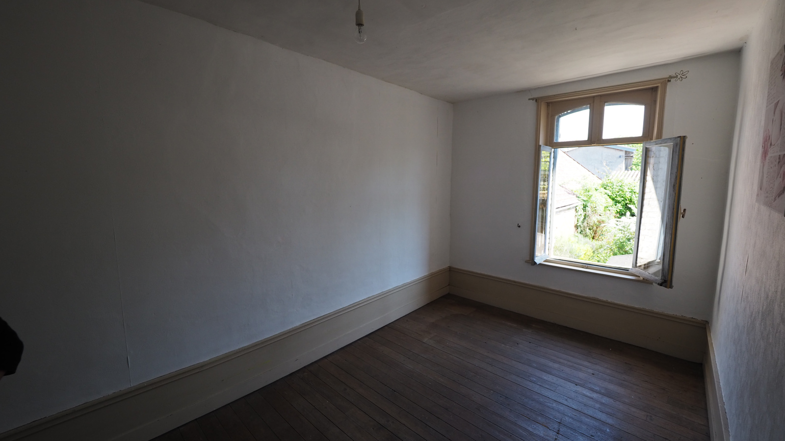 - Détail du bien : menuiseries simple vitrage, volets battants bois ,posiibilité de poser un insert ou poêle à pellet, superbe plancher bois dans les chambres,maison trés lumineuse .